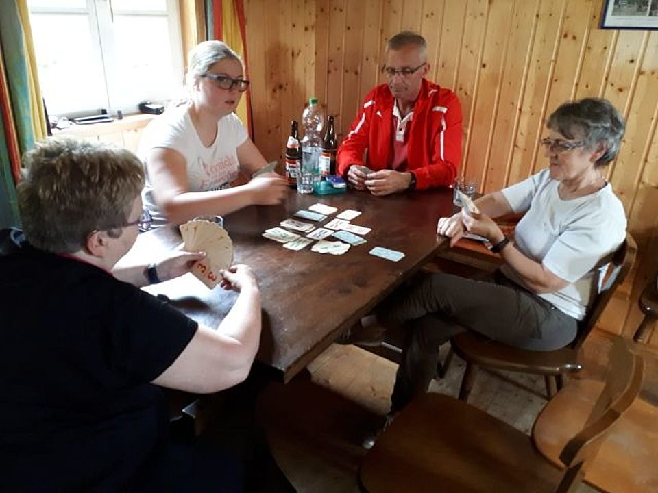 "Bilderupdate" (DRK-MS) Auch dieses Jahr hat der Ortsverein wieder eine Hütte gebucht. Über das lange Pfingswochenende waren die Aktiven aus allen Sparten vertreten. Viele Jugendliche haben die Nächte sehr kurz sein lassen :-) Gemeinsam machte man sich auf den Weg zu einer gemeinsamen Wanderung und am Sonntag ging es bei nicht so tollem Wetter nach Freudenstadt ins Schwimmbad. Am Montagmorgen wütetend alle als Putzteufel.